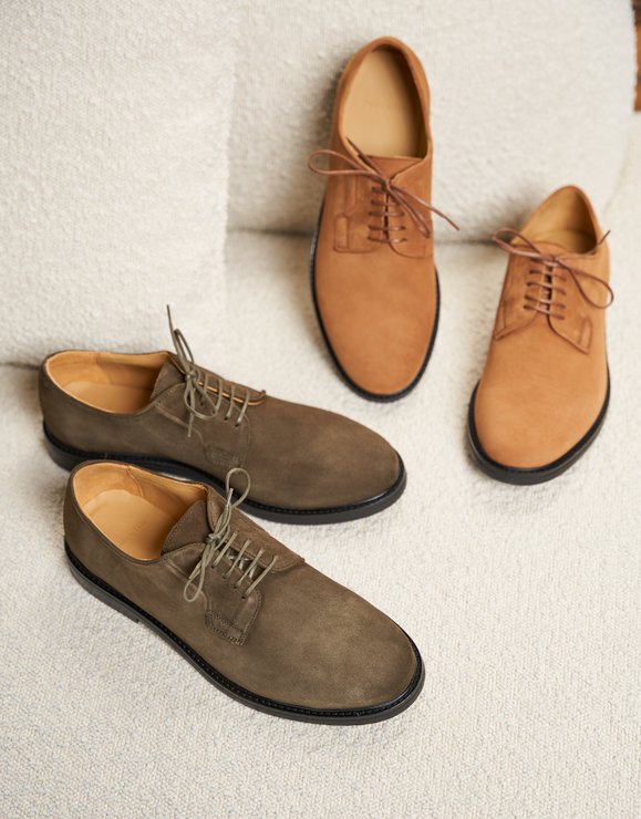 Our luxury derbies for men can be worn with any wardrobe. You can pair our derbies with a suit or dress pants for summer ceremonies as well as for going to work, but also with well-cut jeans or mid-season pants for more casual outings. Available in leaf suede, camel, burgundy and tan or in black leather and brown variations, our luxury derbies allow you to mix codes and have fun enhancing a classic outfit as well as associating your accessories with our colored suede or leather